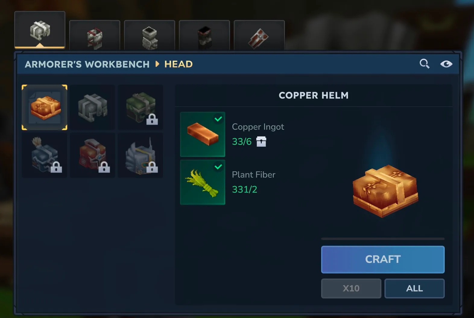 防具に関しても、ミスリルを除く5鉱石分の装備がありますが、上位鉱石の追加に応じて新しい防具も開放されていくことが予想されます。
