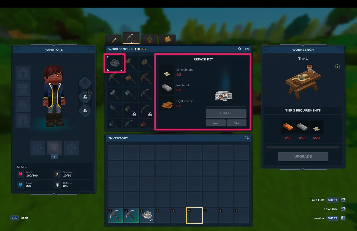 【Hytale】壊れた装備の治し方|リペアキットの使い方を解説