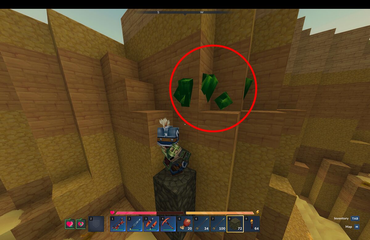 トリウムは緑色の鉱石で、砂漠ゾーンの地下に比較的まとまって生成されています。